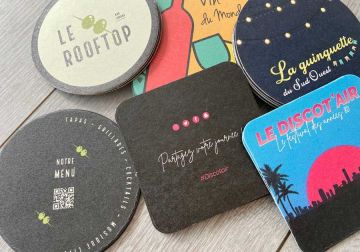 les sous-verre nommés sous-bock sont un support idéal de publicité pour : café, bar, brasserie, restaurant, caves...