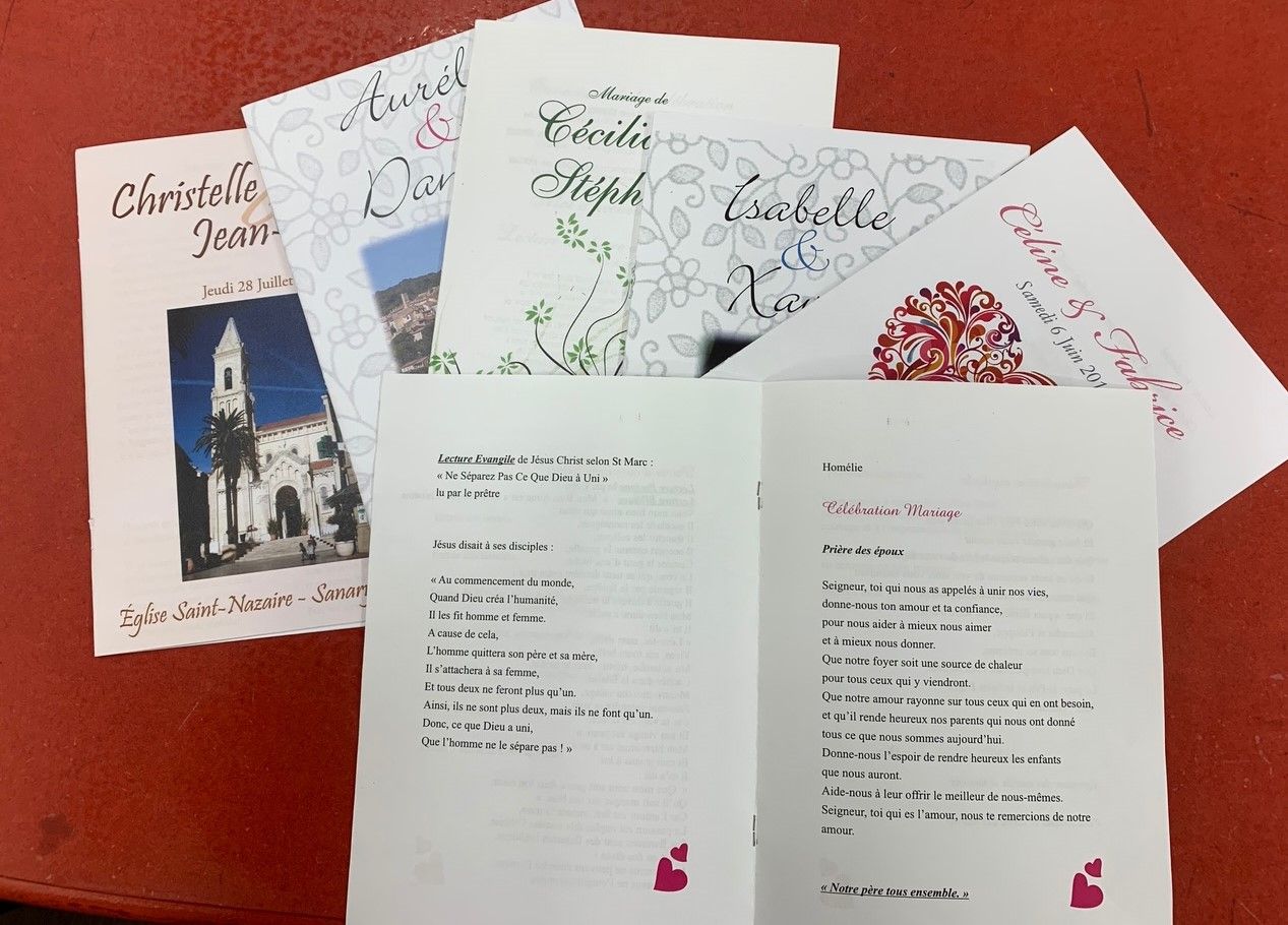 Le livret de messe permet de suivre le déroulement de la cérémonie et de participer à la célébration du mariage.