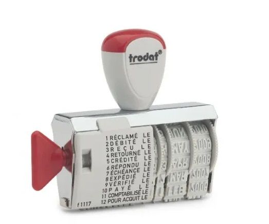 - Le dateur multiformules TRODAT® à une hauteur de date : 4mm et 11 formules commerciales : Reçu le ; Répondu le ; Débité le ; Crédité le ; Payé le ; Réclamé le ; Échéance le ; Expédié le ; Vérifié le ; Comptabilisé le ; Pour acquit le
