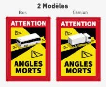 la nouvelle réglementation en matière de sécurité routière impose à tous les véhicules de plus de 3,5 tonnes la pose de 3 autocollants d'avertissement d'angles morts par véhicule dans le but d'améliorer la sécurité routière pour les cyclistes