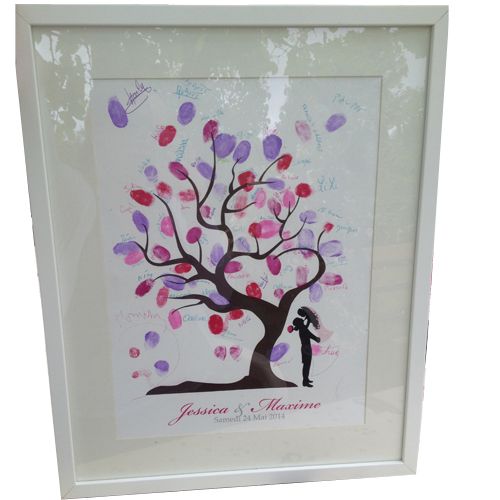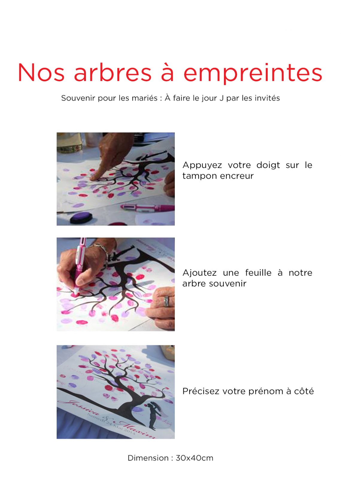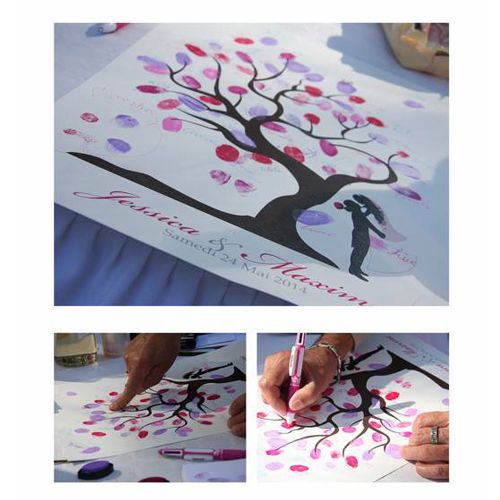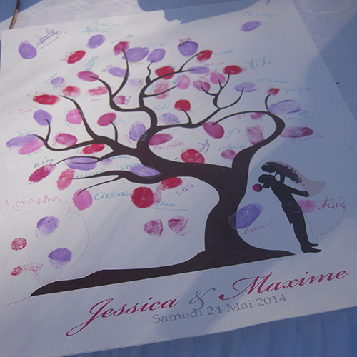 SOUVENIR de l’un des plus beau jour de votre vie par un Arbre à empreintes personnalisé, chaque invité pose son empreinte encrée sur votre arbre pour former une feuille et ajoute son prénom.